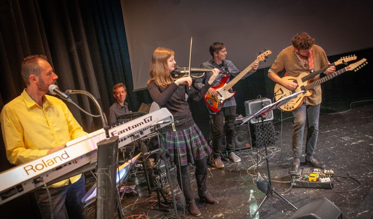 Als wir, fünf ehemalige Studierende der Filmakademie Baden-Württemberg, gefragt wurden, ob wir für die Caligari Preisverleihung des Fördervereins der Filmakademie Baden-Württemberg die musikalische Gestaltung machen wollen, war die Caligari Band geboren.