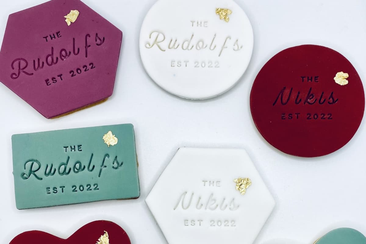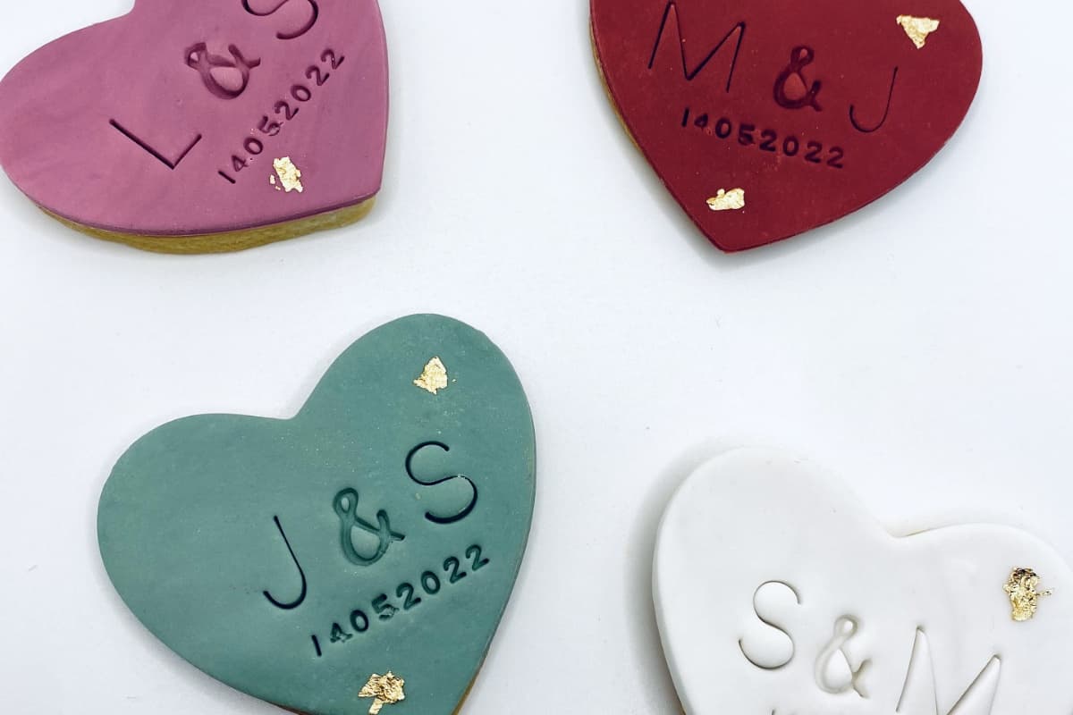 Die Kekse können individuell mit euren Initialen, eurem Hochzeitsdatum sowie einem individuellen Farbschema gestaltet werden. Ebenfalls können wir vegane und glutenfreie Kekse fertigen.